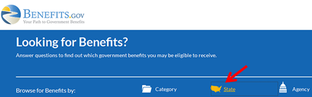 Click Benefits.gov for answers to your questions about disability benefits or assistance. Then click “State“