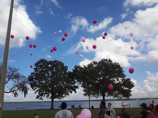 Picnic and breast cancer memory balloon release