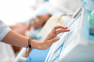 Doctor arm checking monitor of mechanical ventilator